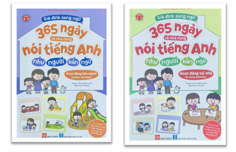Bộ sách Gia đình song ngữ – 365 ngày cả nhà cùng nói tiếng Anh như người bản ngữ của tác giả Patra Patphureerat, xuất bản năm 2024 gồm 2 tập. Nội dung sách xoay quanh 20 chủ đề hoạt động trong gia đình và 15 chủ đề hoạt động ngoài xã hội với hàng trăm từ vựng và mẫu câu giao tiếp thực tế.