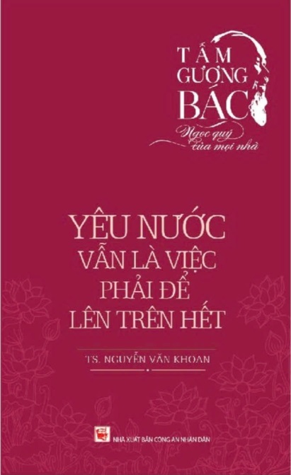 3. “Tấm gương Bác: Ngọc quý của mọi nhà – Yêu nước vẫn là việc phải để trên hết”: Sách được Tiến sĩ Sử học Nguyễn Văn Khoan cần cù sưu tầm qua các sách báo, tập hợp các bài viết về Bác Hồ. Sách được Nhà Xuất bản Công an Nhân dân phát hành năm 2019. Đây là những bài viết ngắn gọn, có nội dung súc tích, dễ đọc, dễ nhớ, phản ánh tình cảm gắn bó của Bác Hồ với bộ đội, cán bộ, nhân dân. Mối quan hệ mật thiết và ứng xử linh hoạt, có tình có lý của Bác Hồ với mọi người qua những câu chuyện bình thường, cụ thể trong đời sống hàng ngày đã được thuật lại một cách tự nhiên đến xúc động lòng người. Từ những mẩu chuyện đó người đọc rút ra được bài học lý tưởng và đạo đức làm người, để theo đó cố gắng học tập tư tưởng không ngừng tiến bộ trong đó trước hết và trên hết là phải yêu nước, thương dân.