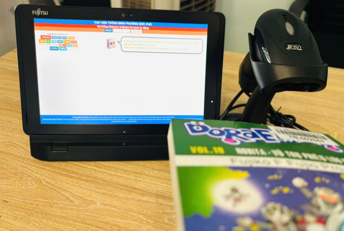 Nhằm bắt kịp xu hướng chuyển đổi số trong hoạt động thư viện và tạo điều kiện thuận lợi để người dân tiếp cận tri thức một cách nhanh chóng, tiện lợi, Thư viện phường Đức Phổ chính thức triển khai mô hình “Thư viện Thông minh – Vietbiblio”. Mô hình được triển khai từ Chương trình “Cùng bạn đọc sách” với sự tài trợ của Vietbiblio, bao gồm 01 máy tính bảng và 01 máy quét mã vạch, hỗ trợ việc mượn – trả sách trở nên dễ dàng và hiện đại hơn.