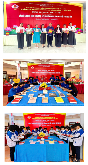 Nhằm tuyên truyền sâu rộng về ý nghĩa, tầm quan trọng của cuộc bầu cử đại biểu Quốc hội khóa XVI và bầu cử đại biểu Hội đồng nhân dân các cấp nhiệm kỳ 2026-2031, Thư viện tổ chức hoạt động trưng bày sách, ảnh, tài liệu phục vụ bạn đọc và nhân dân chuyên đề: “Bầu cử đại biểu Quốc hội và đại biểu Hội đồng nhân dân – Ngày hội của toàn dân”. Hoạt động góp phần nâng cao nhận thức của cán bộ, đảng viên và các tầng lớp nhân dân về quyền và nghĩa vụ công dân trong việc tham gia bầu cử, đồng thời tạo không khí phấn khởi hướng tới ngày hội lớn của toàn dân.