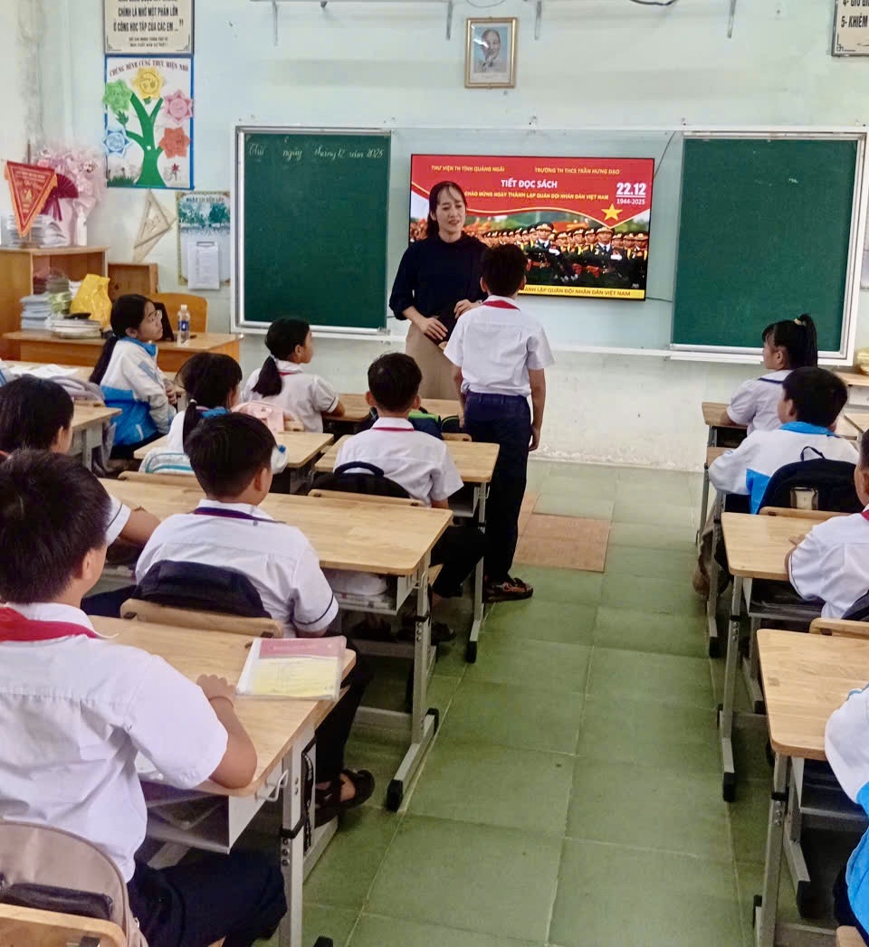 Hướng tới kỷ niệm 81 năm Ngày thành lập Quân đội Nhân dân Việt Nam (22/12/1944-22/12/2025). Hòa chung tinh thần ấy, từ ngày 02/12 đến ngày 26/12, Thư viện tổng hợp tỉnh Quảng Ngãi tổ chức 30 tiết đọc sách với chủ đề “Chú bộ đội của em”, “Uống nước nhớ nguồn” tại 18 điểm trường. Đây không chỉ là một giờ đọc, mà là một hành trình khám phá về lòng dũng cảm, sự hy sinh và tình yêu Tổ quốc.