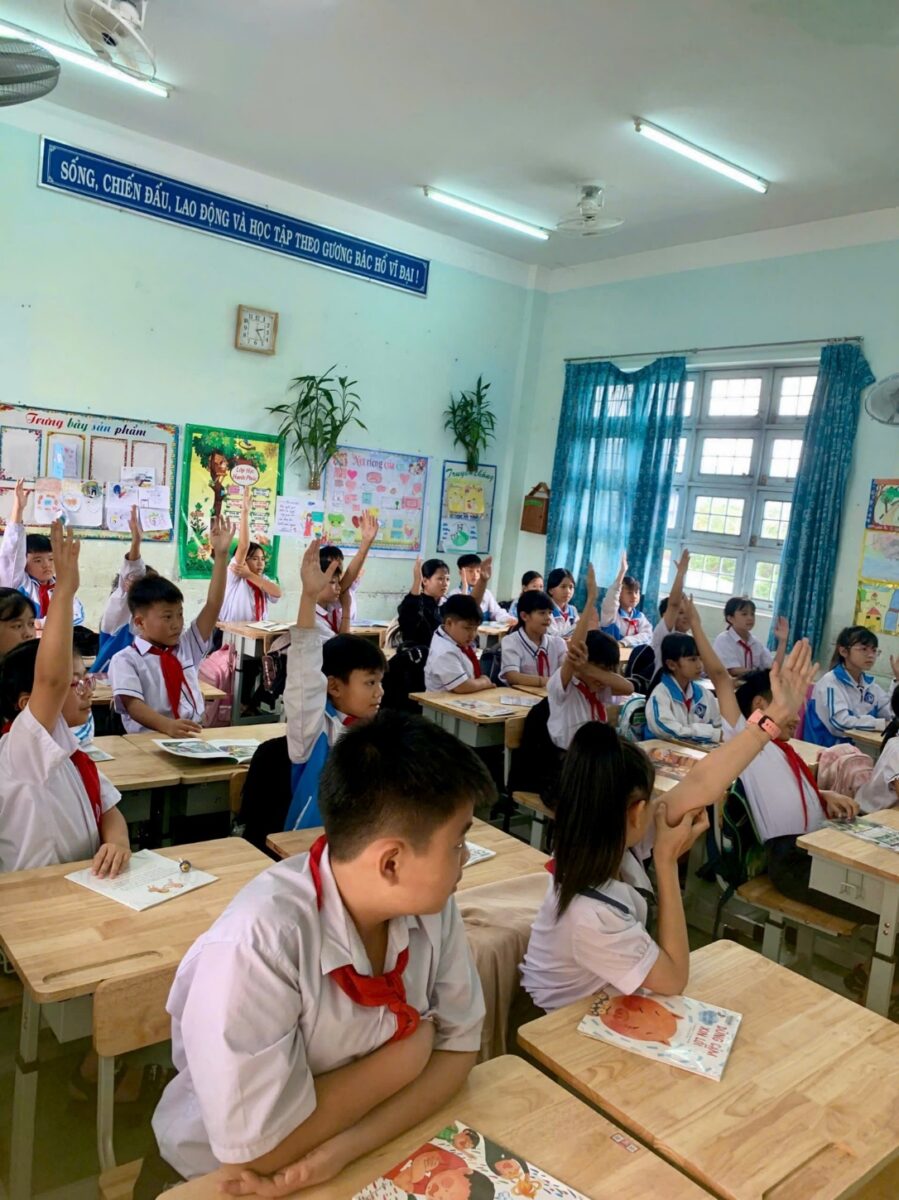 Không khí sôi nổi của tiết đọc sách tại trường TH – THCS Trần Hưng Đạo